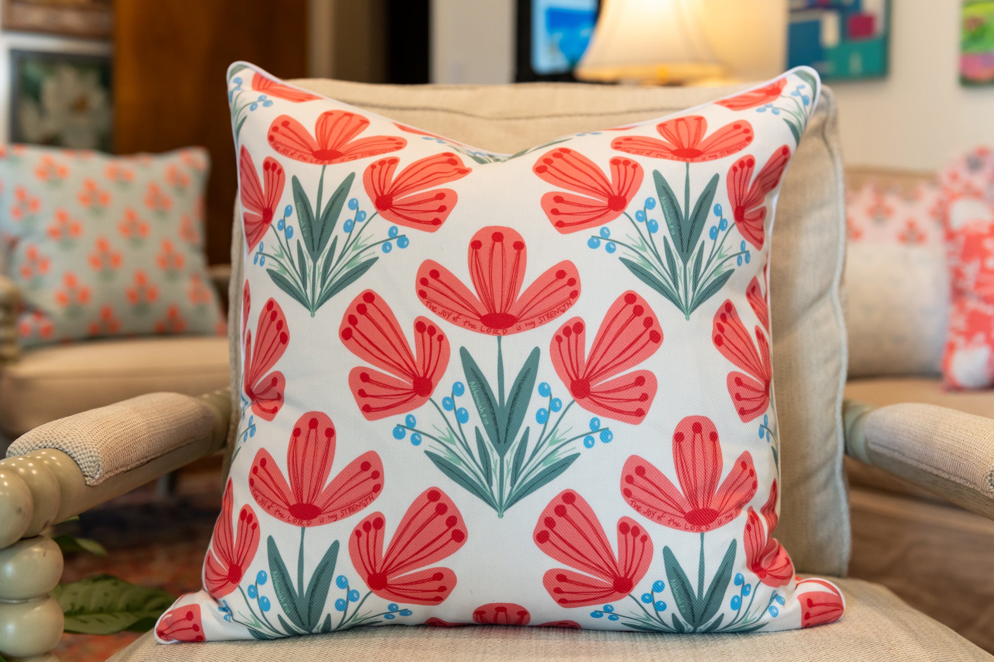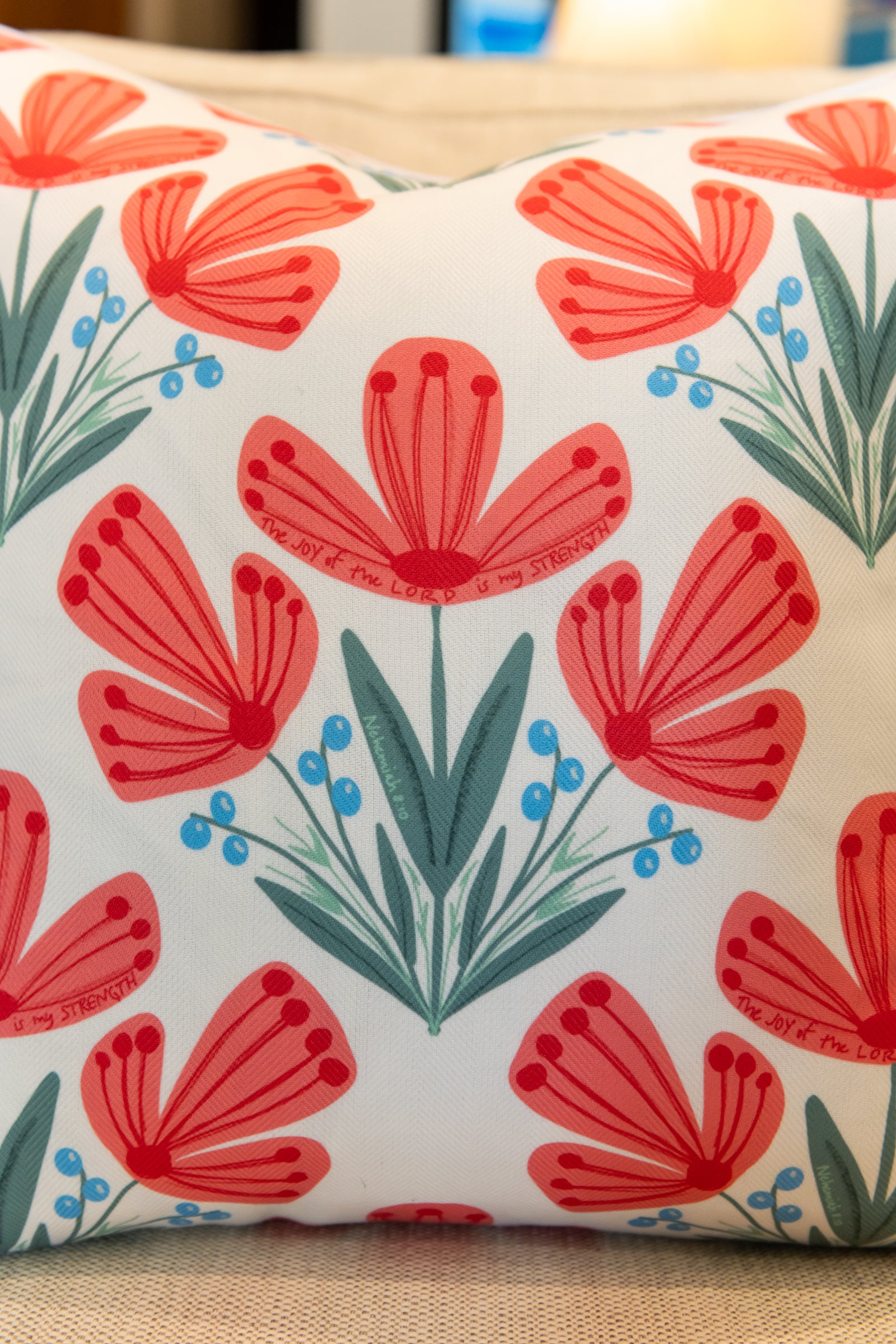 Our pillows combine custom patterns with enduring Truth to beautifully display the Good News!